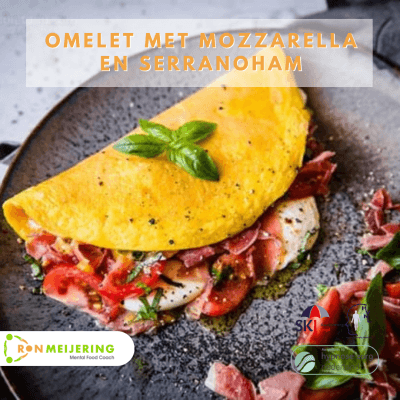 Lekkere en snelle lunch? Omelet met mozzarella en serranoham😃👍 Ingrediënten (voor 1 persoon.): ✔75 g Cherry tomaatjes ✔½ el Italiaanse