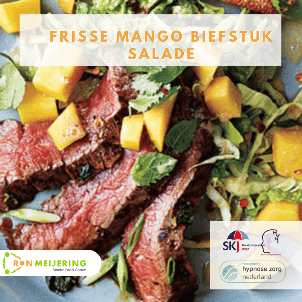 Zin in een lekker fris diner met deze warme dagen?☀😀 Maak deze Frisse mango biefstuk salade! Ingrediënten (voor 1 persoon.):